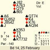 | 3 NT | S | +2 | 460 | 2 | 02 - 01 | 2 | 2 |
