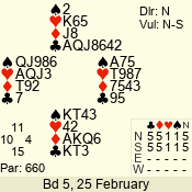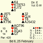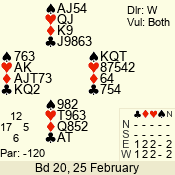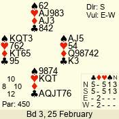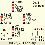 | 3 NT | S | +1 | 430 | 2 | 06 - 04 | 3 | 6 |