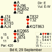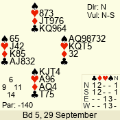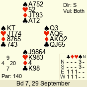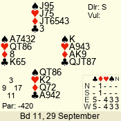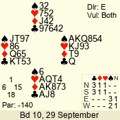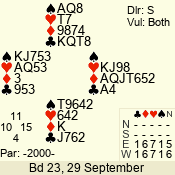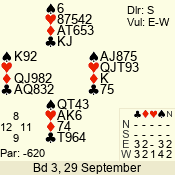 | 3 NT | S | +2 | 660 | 6 | 03 - 01 | 3 | 3 |