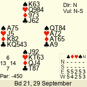 | 3 NT | S | +2 | 660 | 7 | 02 - 05 | 4 | 2 |
