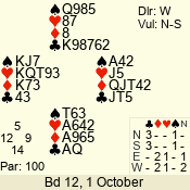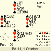 | Con | Dc | Res | Score | Ld | Pairs | Rd | Tbl | | ** | | 420 | | 06 - 04 | 3 | 6 |