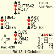 | Con | Dc | Res | Score | Ld | Pairs | Rd | Tbl | | ** | | 630 | | 06 - 06 | 1 | 6 |