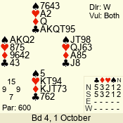 | Con | Dc | Res | Score | Ld | Pairs | Rd | Tbl | | ** | | 600 | | 01 - 04 | 4 | 1 |